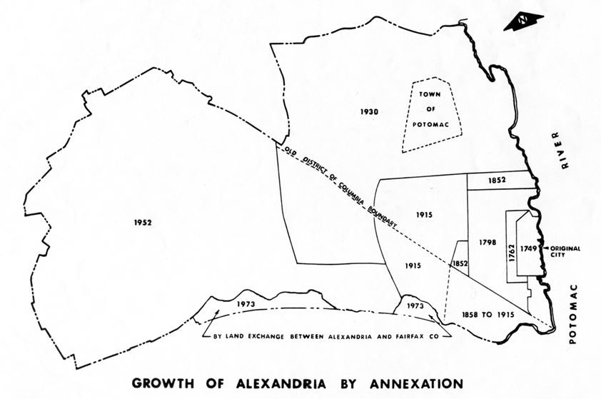 On December 3, 1951, the City of Alexandria annexed 7.65 miles of land west of Quaker Lane from Fairfax County, for the sum of $500,000. At the time, the then rural area was sparsely settled, with only several hundred residents and a system of largely unpaved roadways. The annexation doubled the size of Alexandria overnight and allowed for the extension of city services to enable high-density development of the area.
