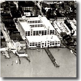“On November 12, 1918, construction began for the U.S. Naval Torpedo Station, on North Union Street. A contract for its construction had been awarded on October 14, 1918, but work did not begin until the day after Armistice Day (November 11, 1918), which marked the official end of World War I. The first torpedo was produced there in November 1920. Once fully operational, the Torpedo Station was responsible for the manufacture and maintenance of torpedoes for the next five years. Work stopped and the facility served as a munitions storage area until World War II when production on the Mark XIV (a submarine borne torpedo) and the Mark III aircraft torpedo resumed at an intense rate. Over time, ten additional buildings were added to the complex. In 1974 the building was converted into the Torpedo Factory Art Center, one of the nation’s first adaptive reuse projects for a historic building”.